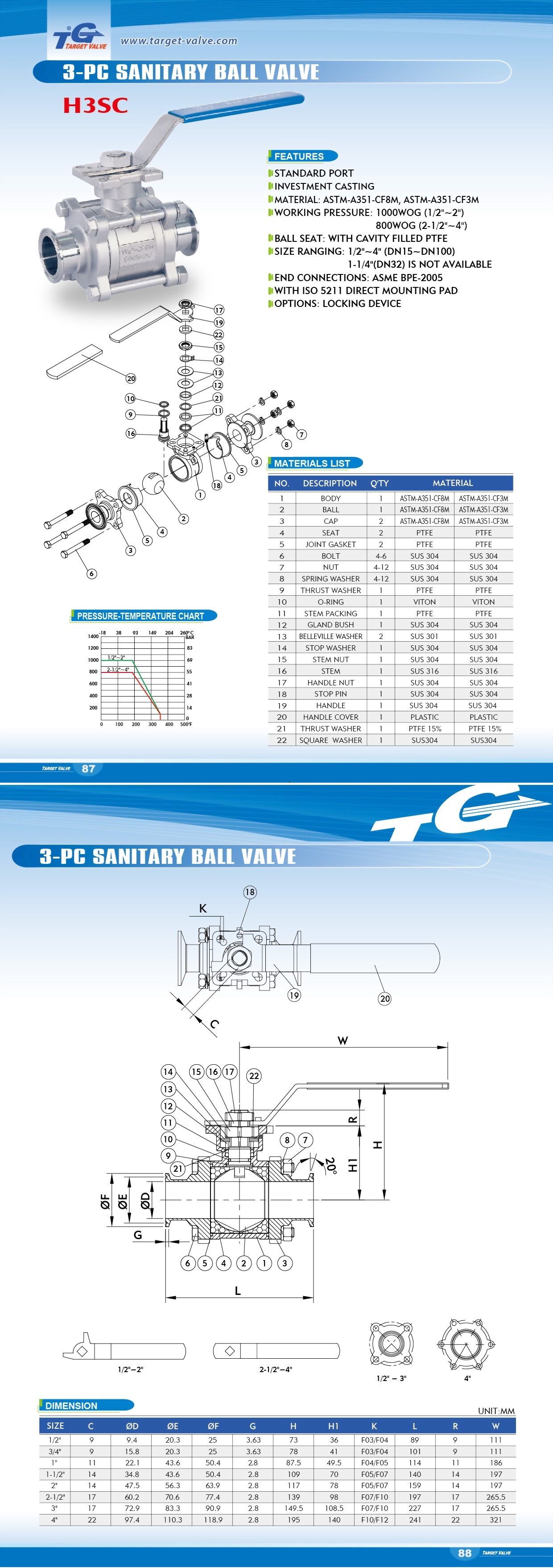 3 PC SANITARY BALL VALVE is a hygienic ball valve designed for use as a product valve, in